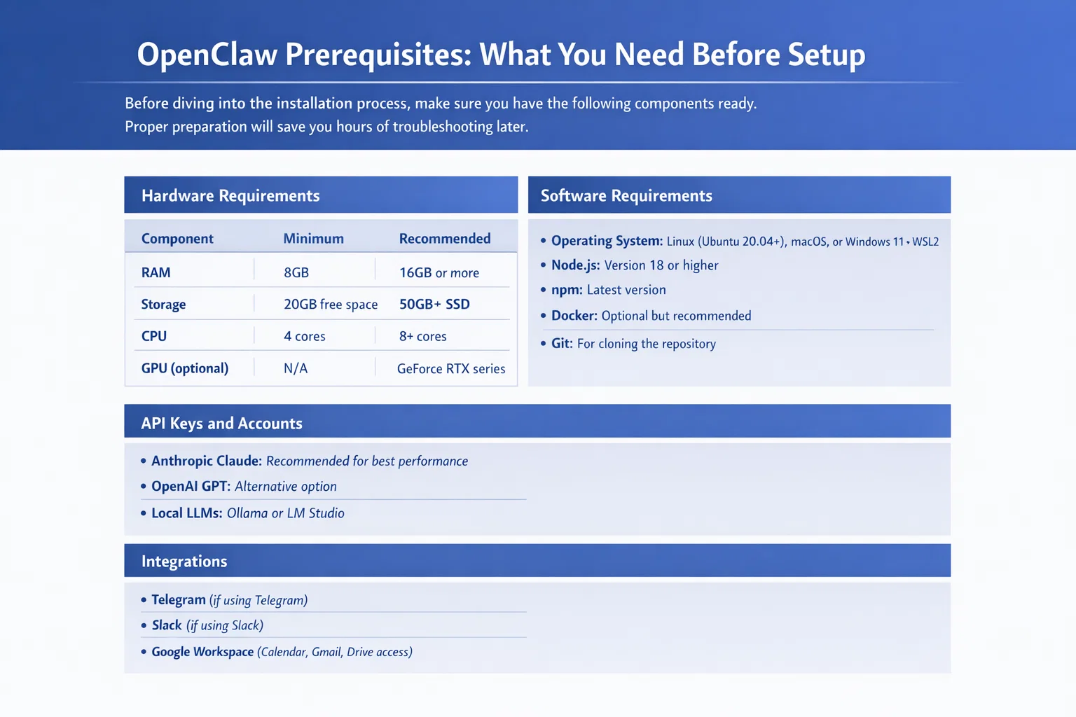 Vereisten voor OpenClaw: Wat u nodig hebt vóór de installatie